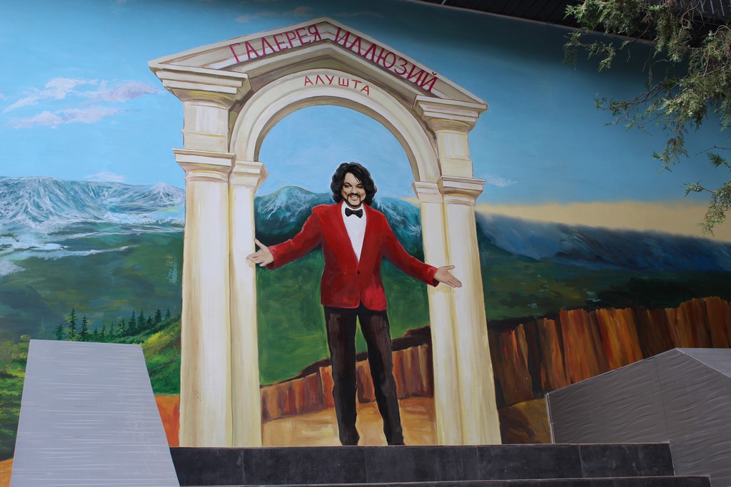 Фасад Галереи иллюзий, ставшей еще одним оригинальным украшением курортного лета в Алуште в 2021 году, выглядит не менее привлекательным, чем вся Галерея и ее внутренние залы.