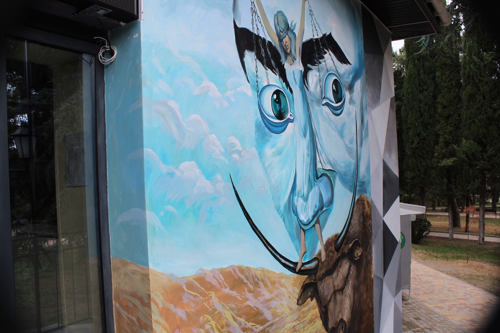 Также среди картин галереи с внешней стороны здания можно увидеть изображение горной долины Ай петри с высоты птичьего полета. Оно завораживает своей уникальностью, так как не каждому удается в реальности побывать в таком прекрасном месте.
