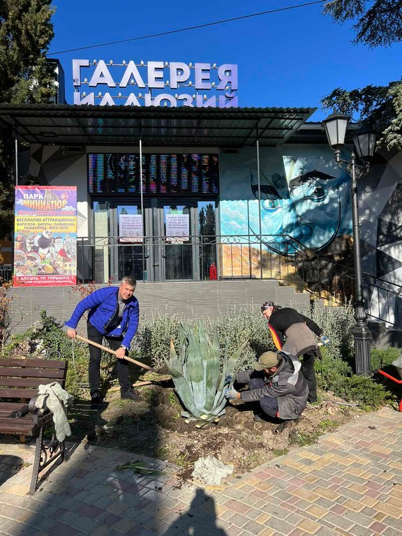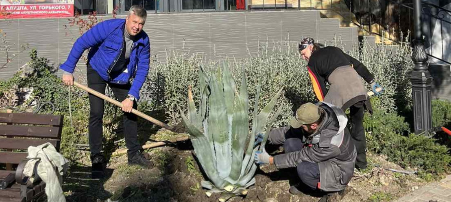 Активные представители Алуштинского городского отделения ЛДПР высадили на участке Приморского парка саженцы агавы (3 шт.), кактусов (20 шт.), а также почвопокровники (стелящиеся вечнозеленые растения, покрывающие почву).